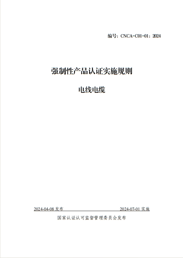 電線電纜 強制性產品認證實施規則